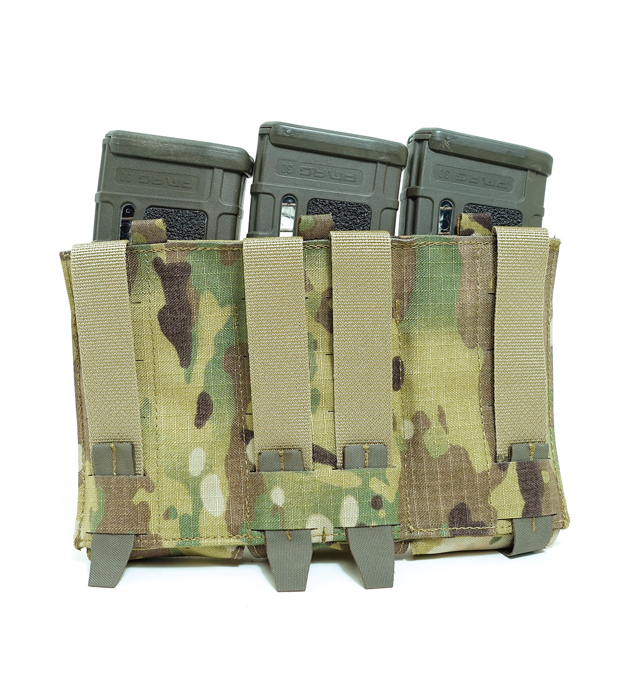 4d.t.g. Elastic Rifle Mag Pouch(伸縮式小銃弾納3連)は、主にチェストリグ、プラカード正面やカマーバンドへ装着する為の薄型の小銃弾納である。