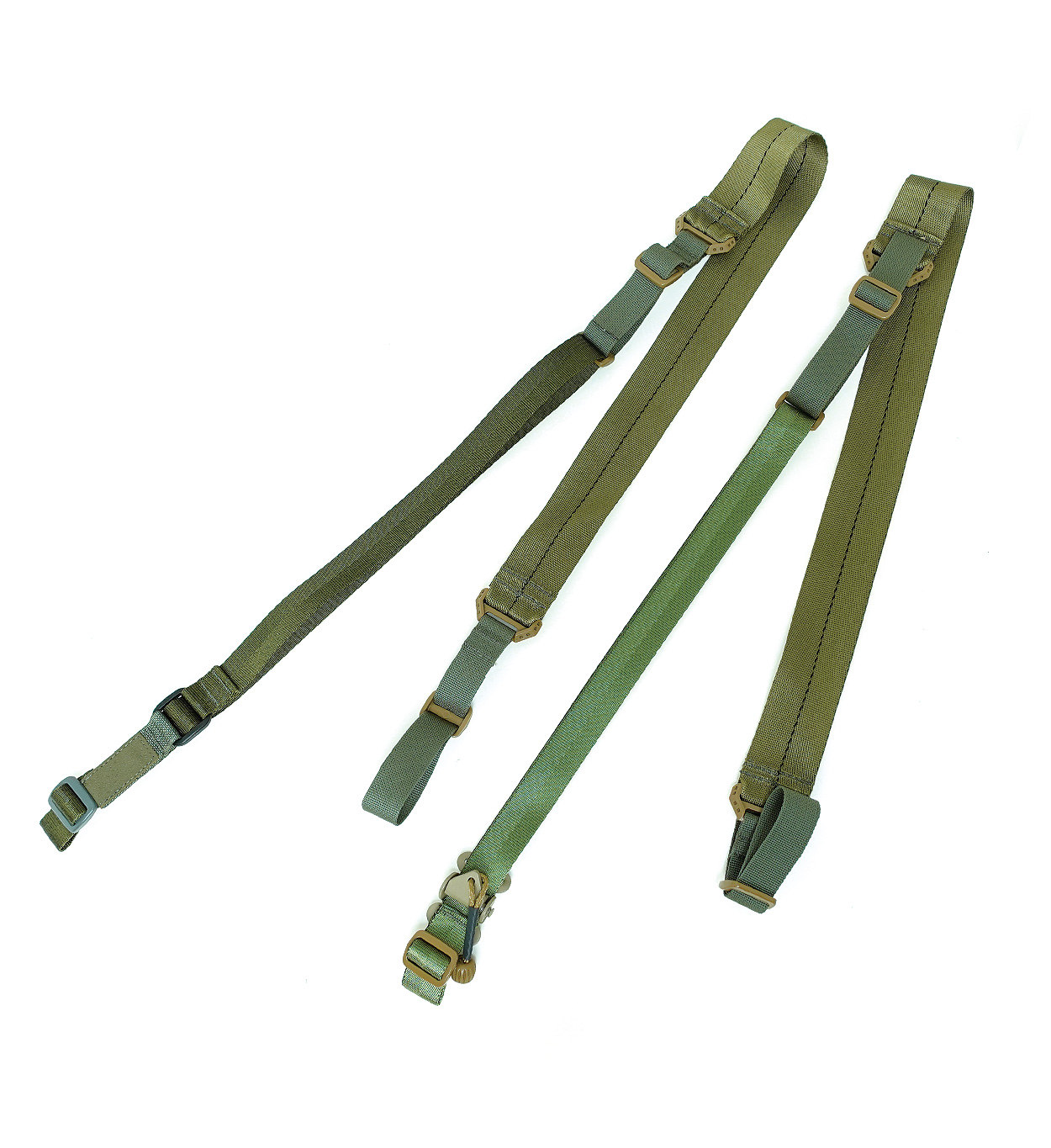 2点式スリング 3型は、しなやかなウェビング素材の肩当部分を有した2点式スリングである。負い環位置により、野戦から市街地用途まで幅広く対応する。