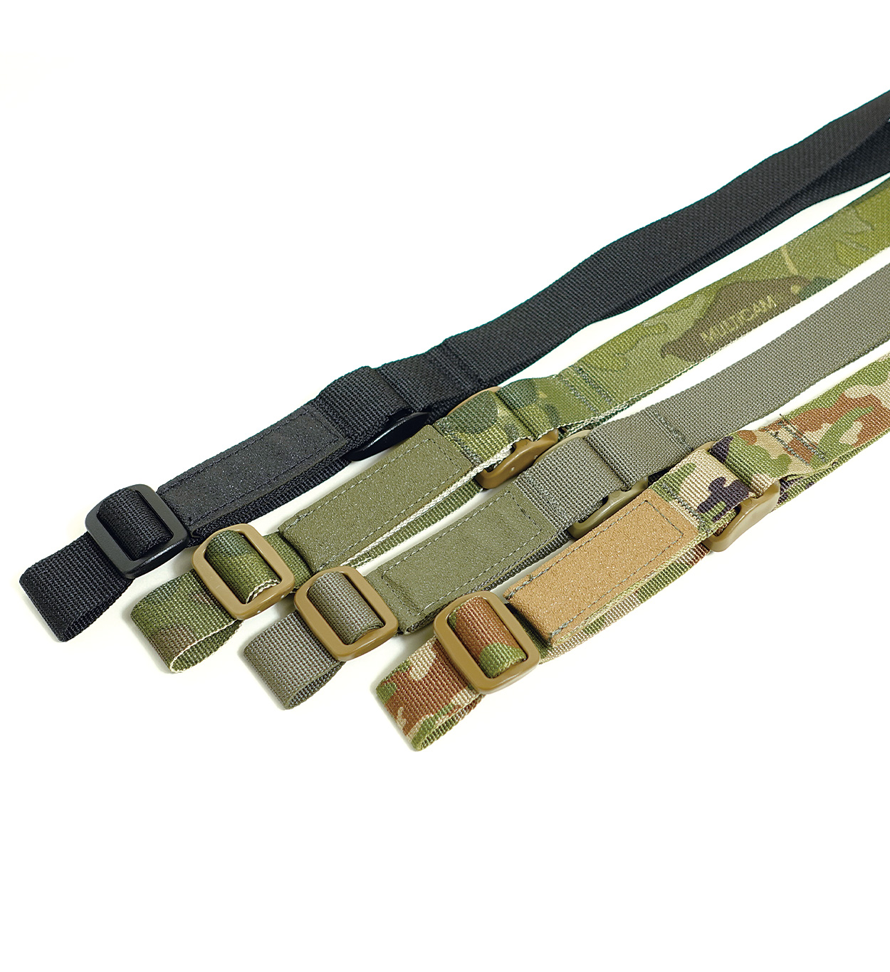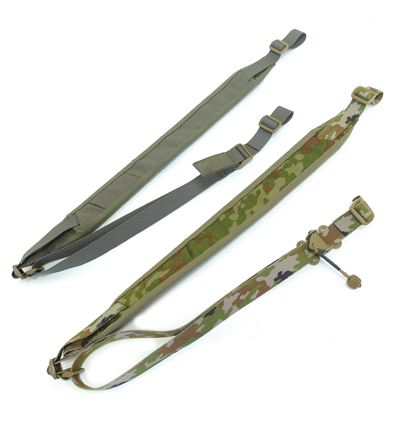 2点式スリング 4型は、パッド無し/25mm幅のナイロンウェビング+伸縮システムを有した2点式スリングである。負い環位置により、野戦から市街地用途まで幅広く対応する。