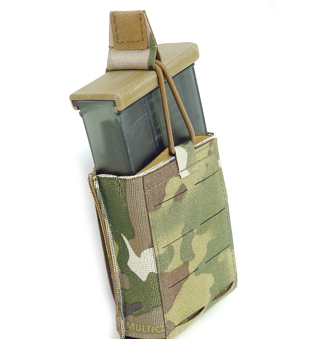 ポーチ本体は伸縮性の高い2枚のゴム素材で構成されており、引っ掛かりの多い形状のHK417/G28弾倉を抜き差し容易な仕様となっている。