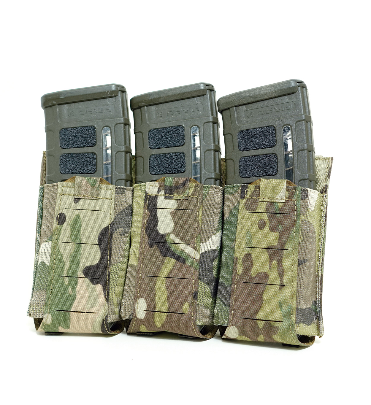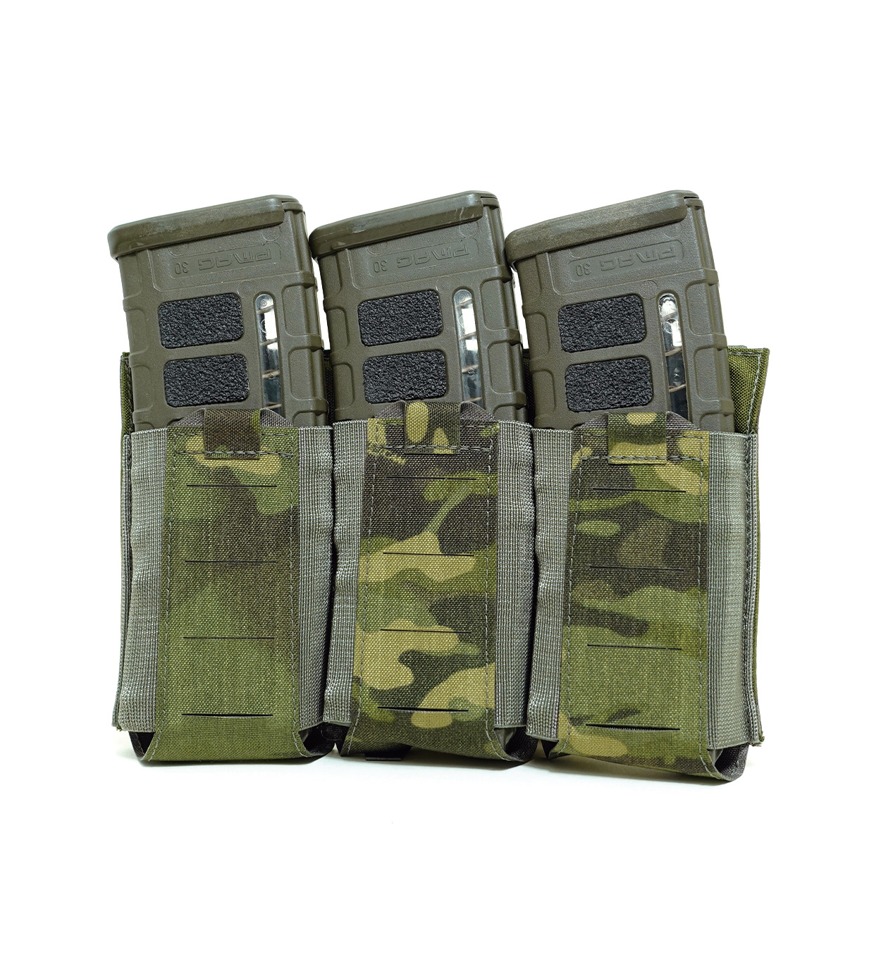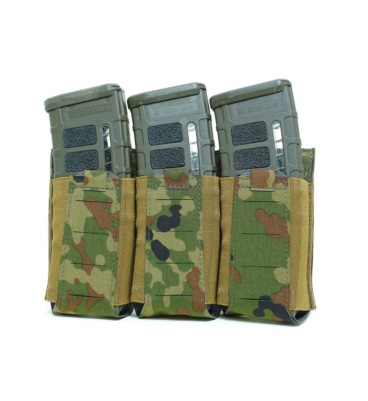 4d.t.g. Elastic Rifle Mag Pouch(伸縮式小銃弾納3連)は、主にチェストリグ、プラカード正面やカマーバンドへ装着する為の薄型の小銃弾納である。