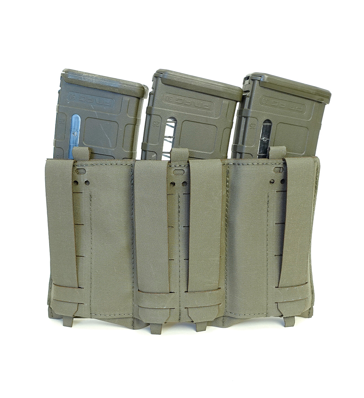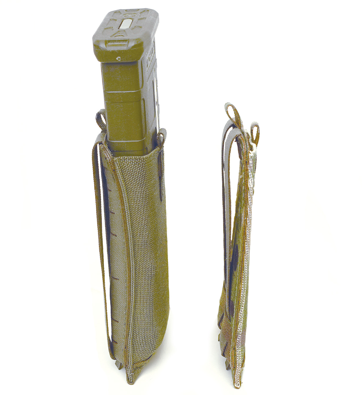 4d.t.g. Elastic Mag Utility Pouch(伸縮式汎用弾納 3連)は、近年トレンドの伸縮式の弾納である。本体正面はゴム製につき、収納物を選ばない。